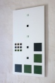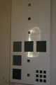 éléments en relief walchromat patiné et laqué sur fond glycéro blanc brillant